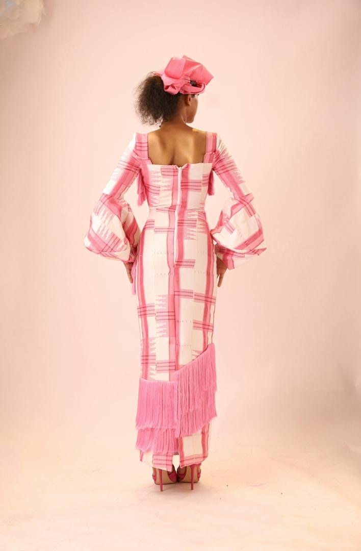 Made in hand woven traditional Aṣọ-Òkè in a custom pattern, it is a dialogue between heritage and modern elegance…
